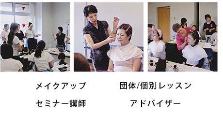 美術系の短期大学を卒業後、広告、デザインの世界で生きてきた私にとって、メイクアップとの出会いは突然でした。メイクアップのことがよくわからず、偏見もあった私が今こうしてメイクアップを生業にしていることは運命としか言いようがありません。「しかたがない。とりあえずやってみるか」とはじめたメイクアップですが、その力と奥深さに魅了され、舞台やブライダル、講師として後進の指導など順調にキャリアを積んでいくうちに「何か違う。メイクアップは特別な人のものではなく、一番必要としているのは一般の女性ではないか」と思うようになりました。メディアでメイクアップがよく取り上げられる時代にありながら、間違った情報も多く、日々必要とされる通常のメイクはほとんどと言って良いほど伝えられていません。プロとして培った本当のメイク術をわかりやすく簡単に、毎日の限られた時間の中で出来るものにし、そのメイク術が持つ力を一人でも多くの方々に伝えたい一心で、セミナーや個人レッスンを中心に活動してきました。メイクアップは情動に作用して、感情を豊かにします。そのままの自分が、何倍も美しくなった顔を鏡を通して見ることで自信につながり、内側からの力となり煌めいて、生き方までかわってきます。「本来の煌めく個性を表現する喜び」に触れ、心の底からの笑顔をみることが、メイクを伝えてきた私の一番の喜びです。卒業していったすべての生徒とのご縁を大切な宝とし、さらに一人でも多く自身の幸せを感じながら社会に貢献できる生徒を育成することがメイクアップアーティストとしての私の役目だと信じております。
